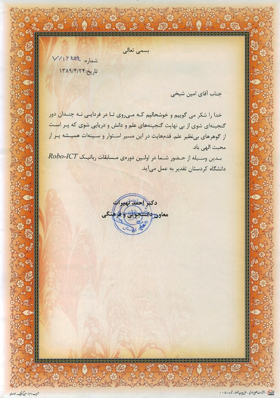 | شرکت در مسابقات روباتیک، دانشگاه کردستان سال 1389، تیم الیت |
