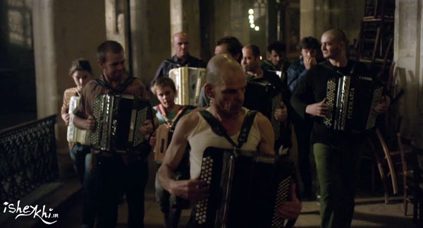 هنوز گرم مشاهده عنوان بازیگران فیلم هستید که متوجه حضور فردی برهنه و در حال جست و خیر میان برشهای مختلف اسامی میشوید و در کمال تعجب، در آخرین برش عنوان همان فرد در مرکز صحنه سنگی را مکرراً به زمین میزند!